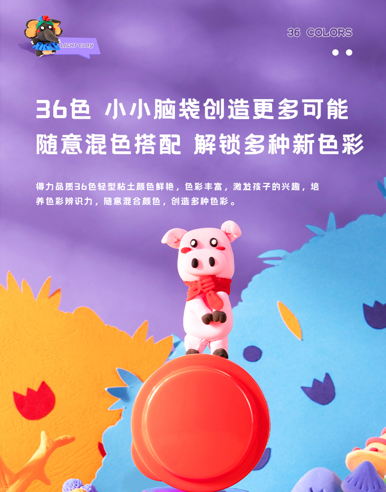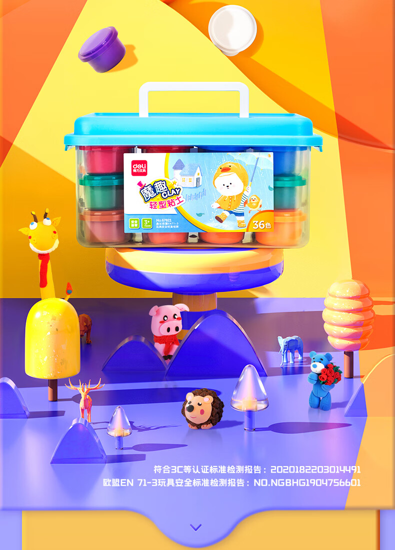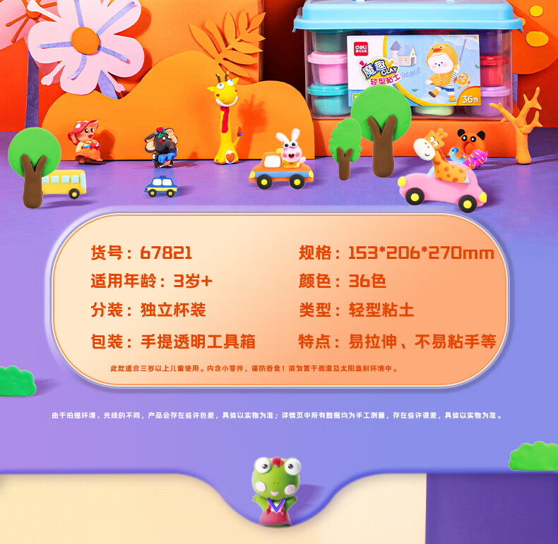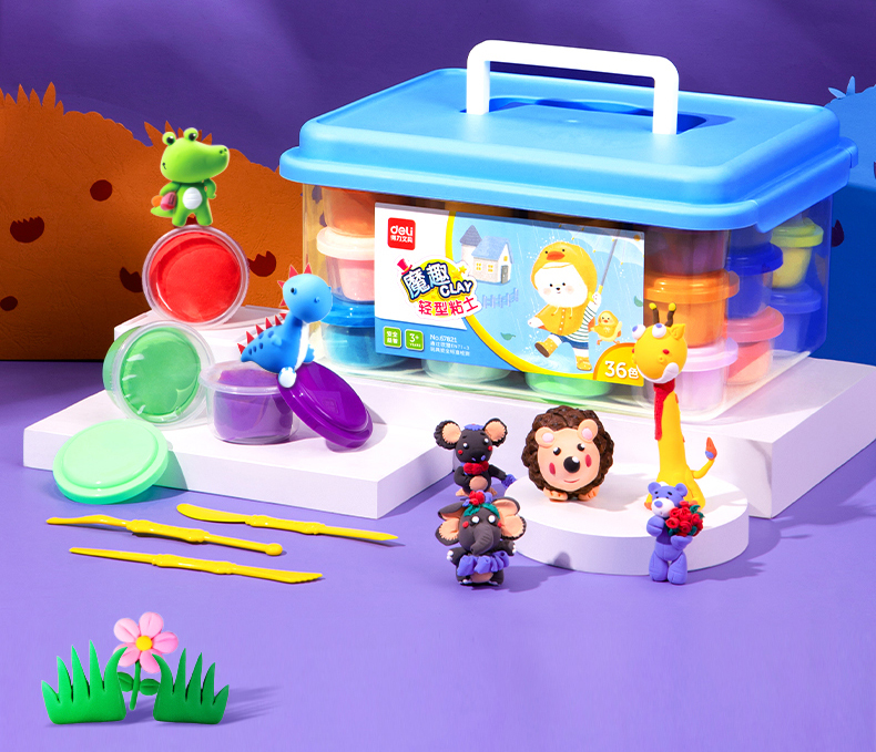 得力(deli)36色超輕粘土 兒童玩具生日禮物黏土彩泥橡皮泥 美術手工DIY制作太空沙 收納工具箱 67821 自營