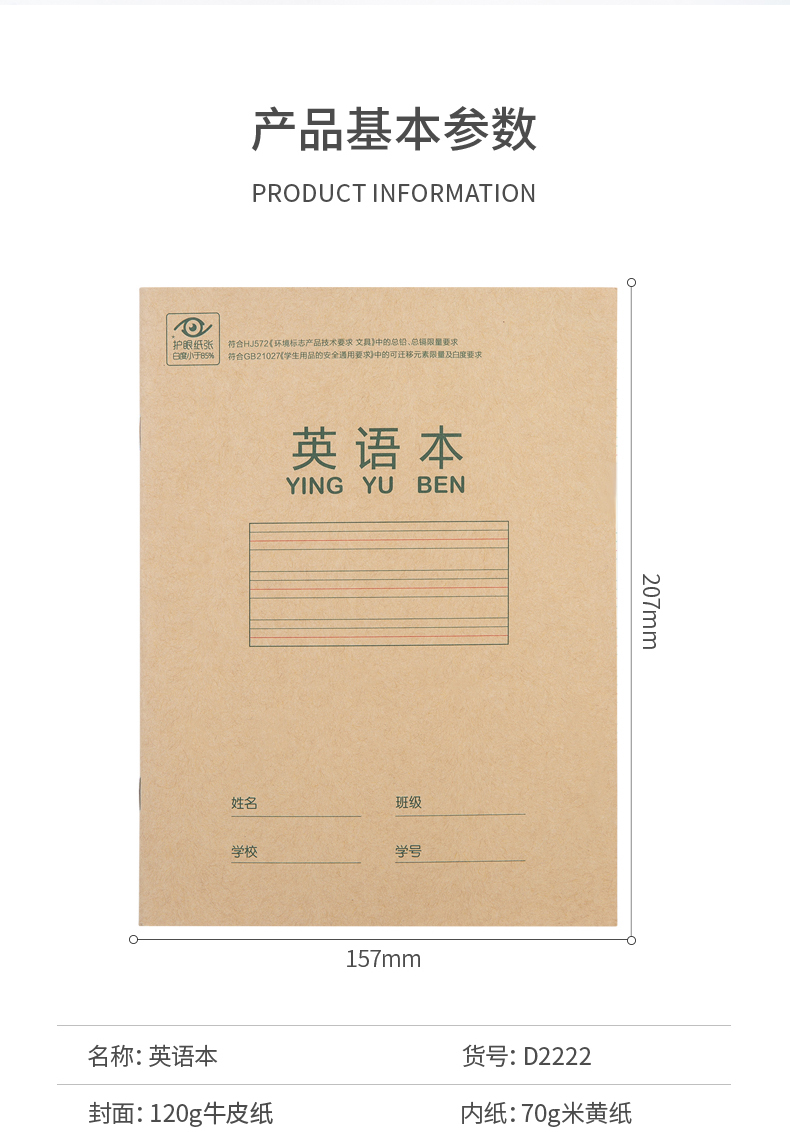 得力(deli)22K20張小學(xué)生英語本作業(yè)本軟抄本筆記本子文具 20本裝D2222 自營