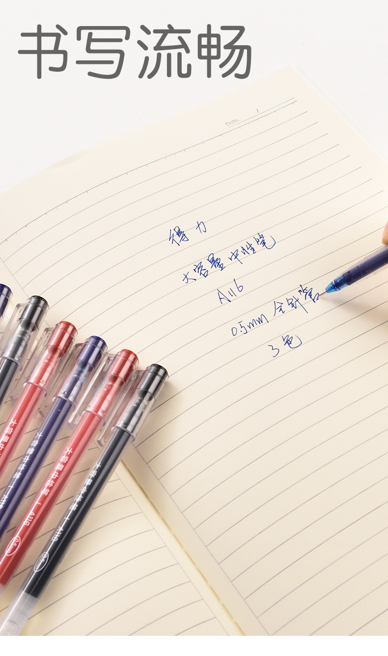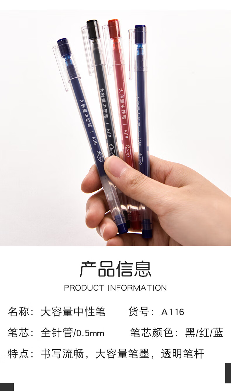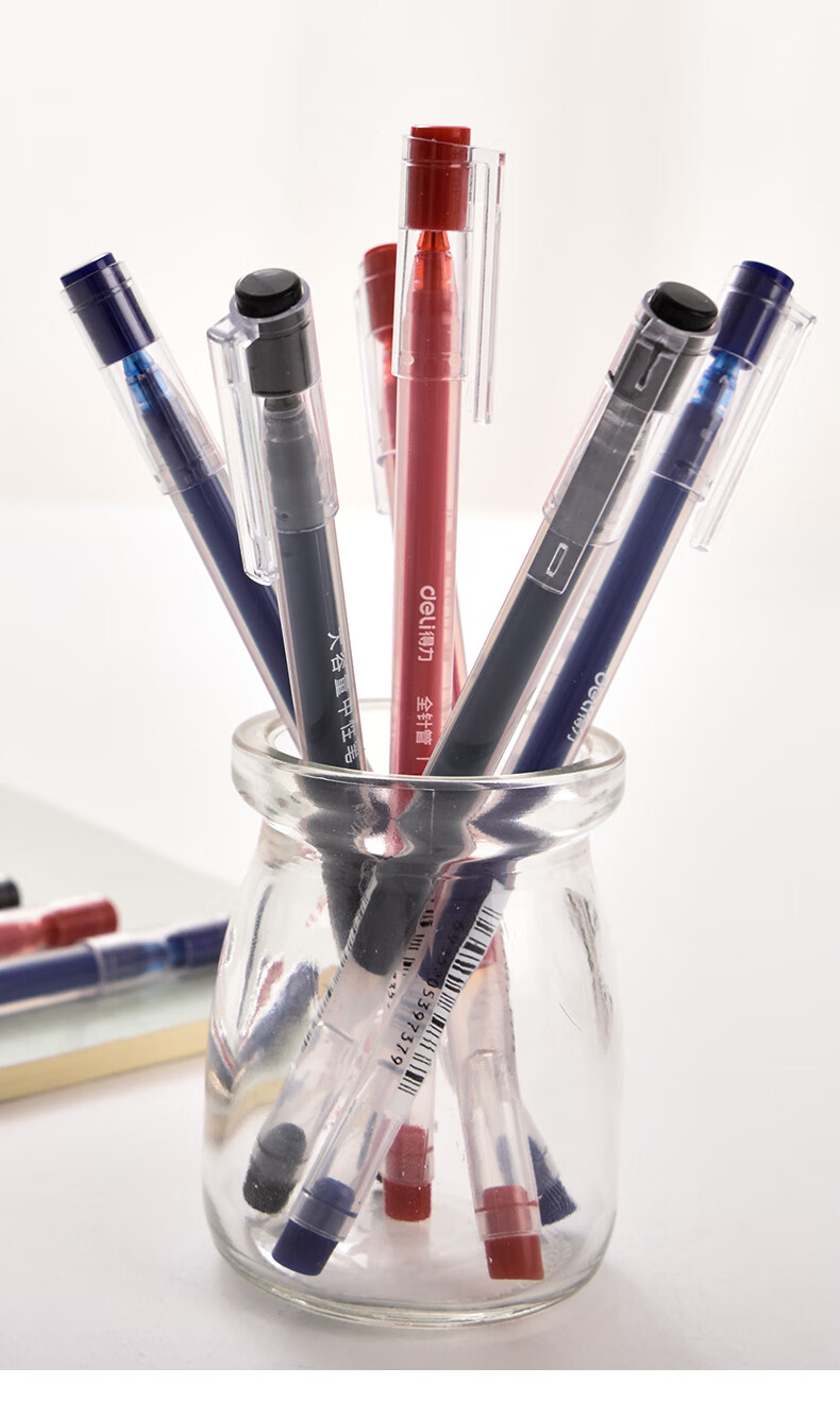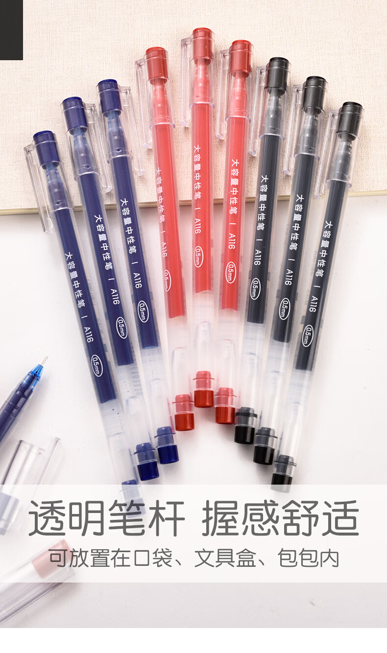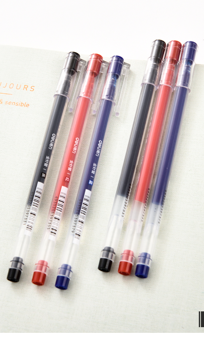 得力(deli)巨能寫中性筆0.5mm水筆 大容量全針管水性筆學(xué)生用簡約無印透明文具辦公寫字筆批 黑色12支/盒 自營