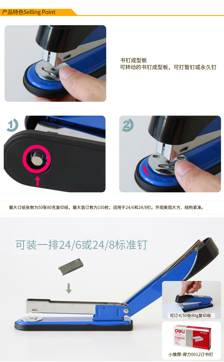 得力(deli)12#金屬材質(zhì)訂書機(jī)/訂書器 可裝訂50頁 顏色隨機(jī)0314 自營