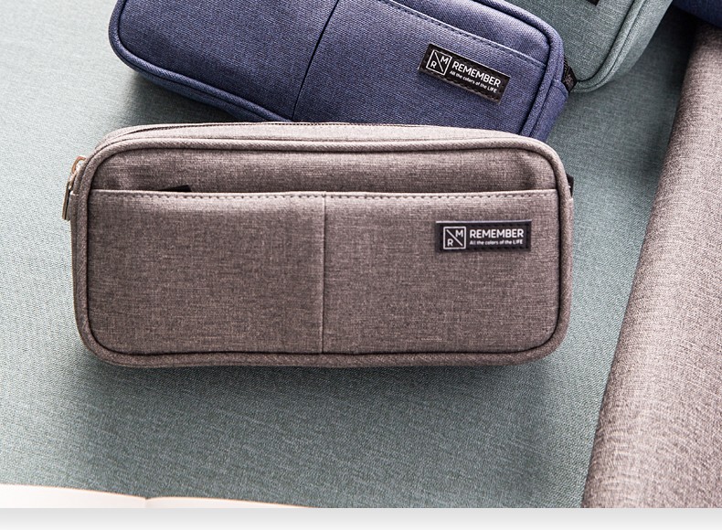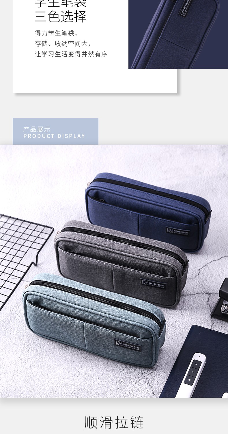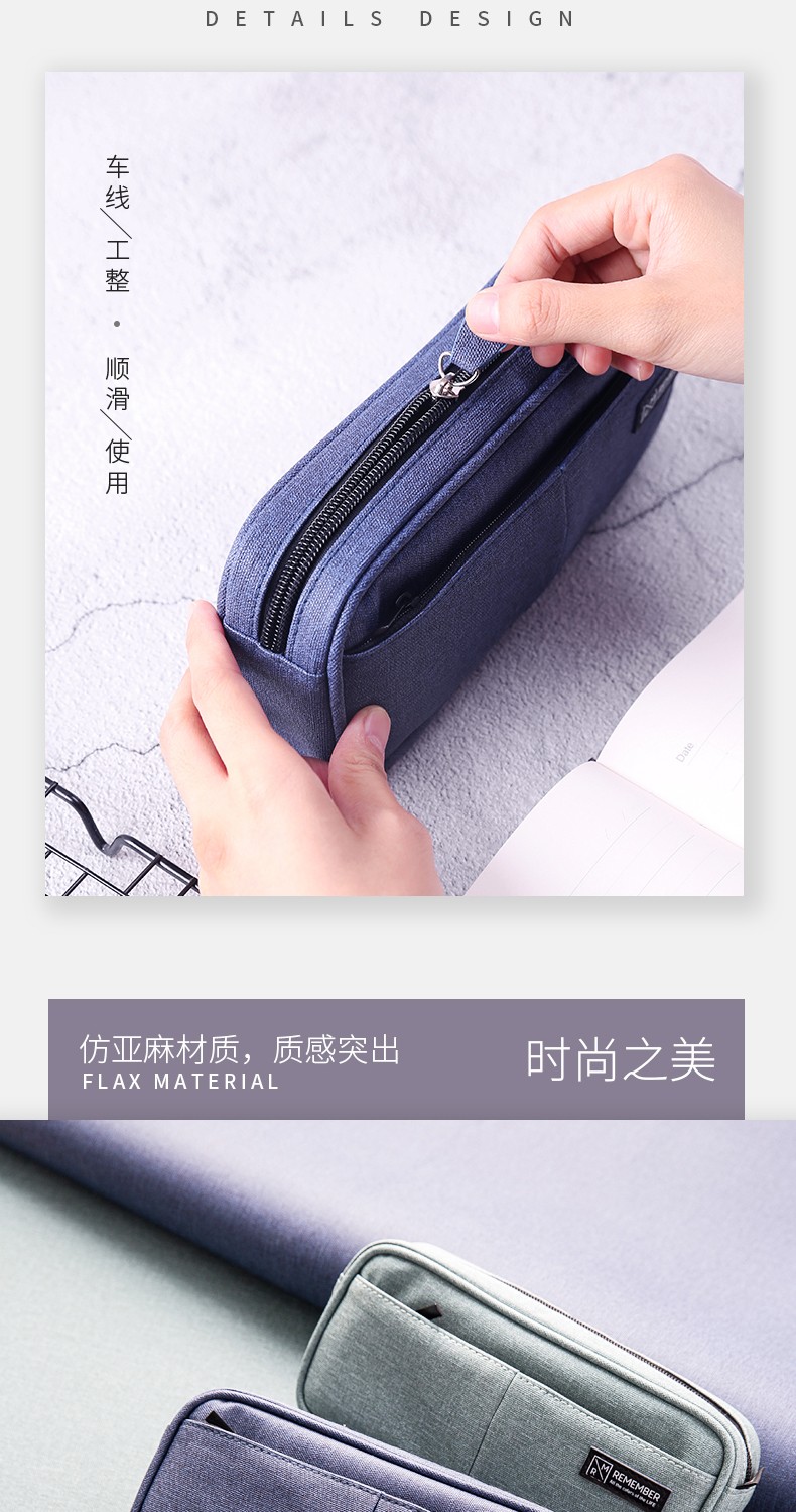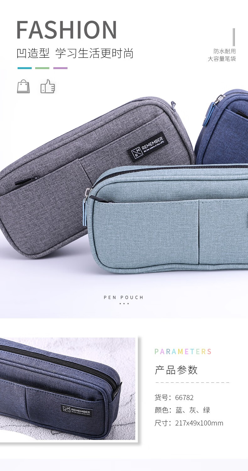 得力(deli)多層大容量仿亞麻筆袋多功能鉛筆收納袋商務(wù)包 學(xué)生文具盒 高級灰66782 自營