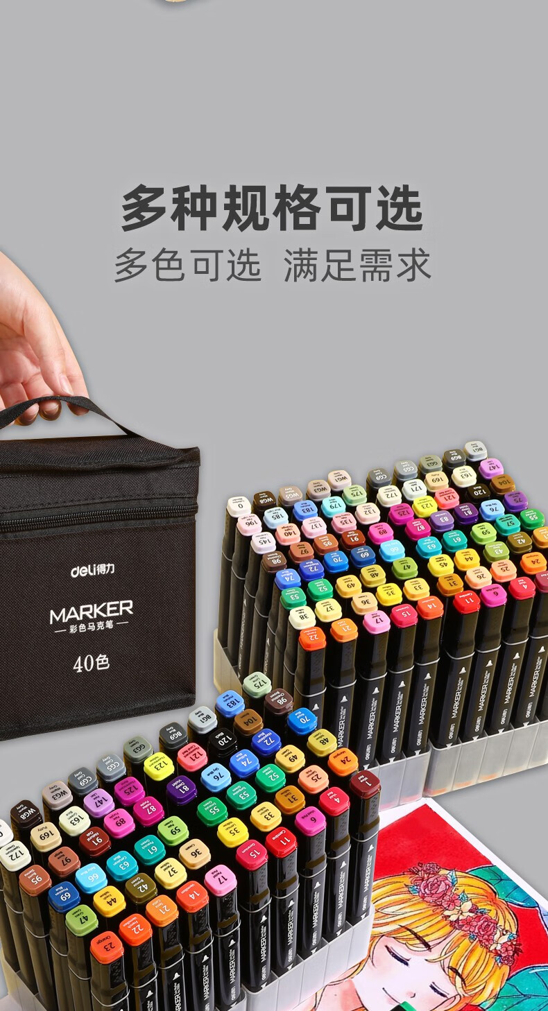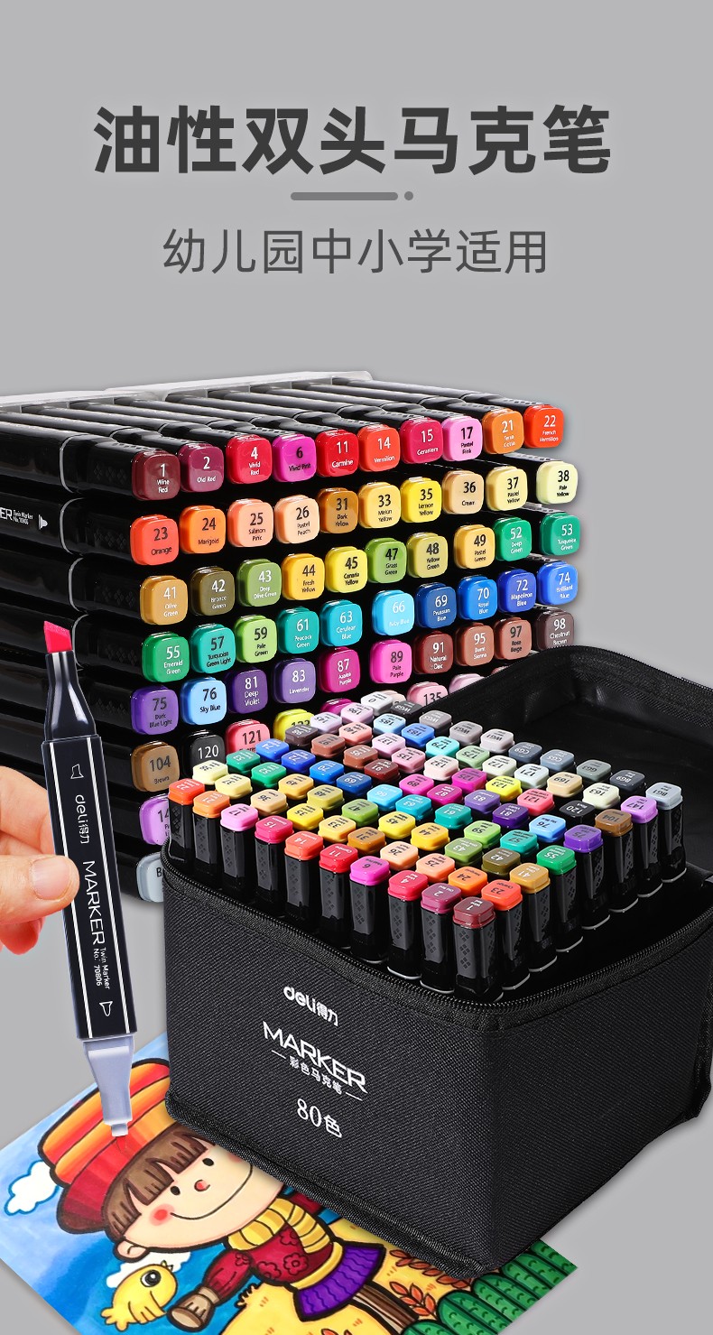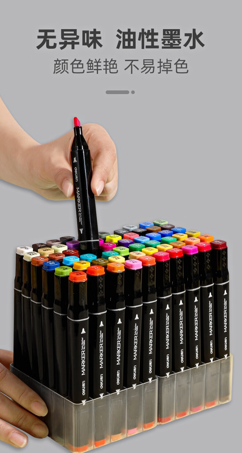 ¥3.40得力(deli)48色水性馬克筆套裝 雙頭無酒精味軟頭水彩筆兒童學(xué)生美術(shù)專用繪畫畫筆套裝 70809-48