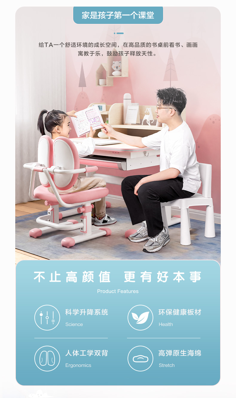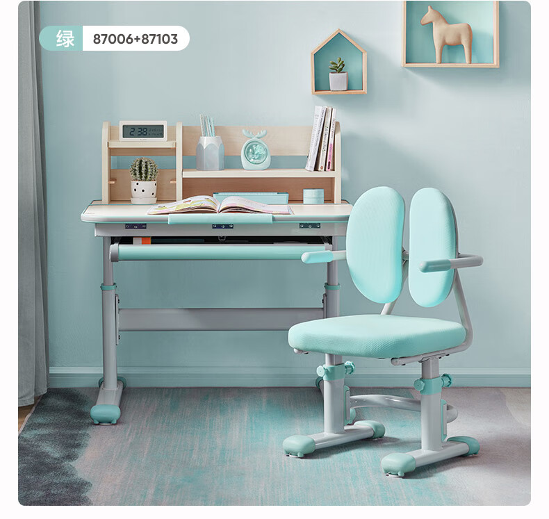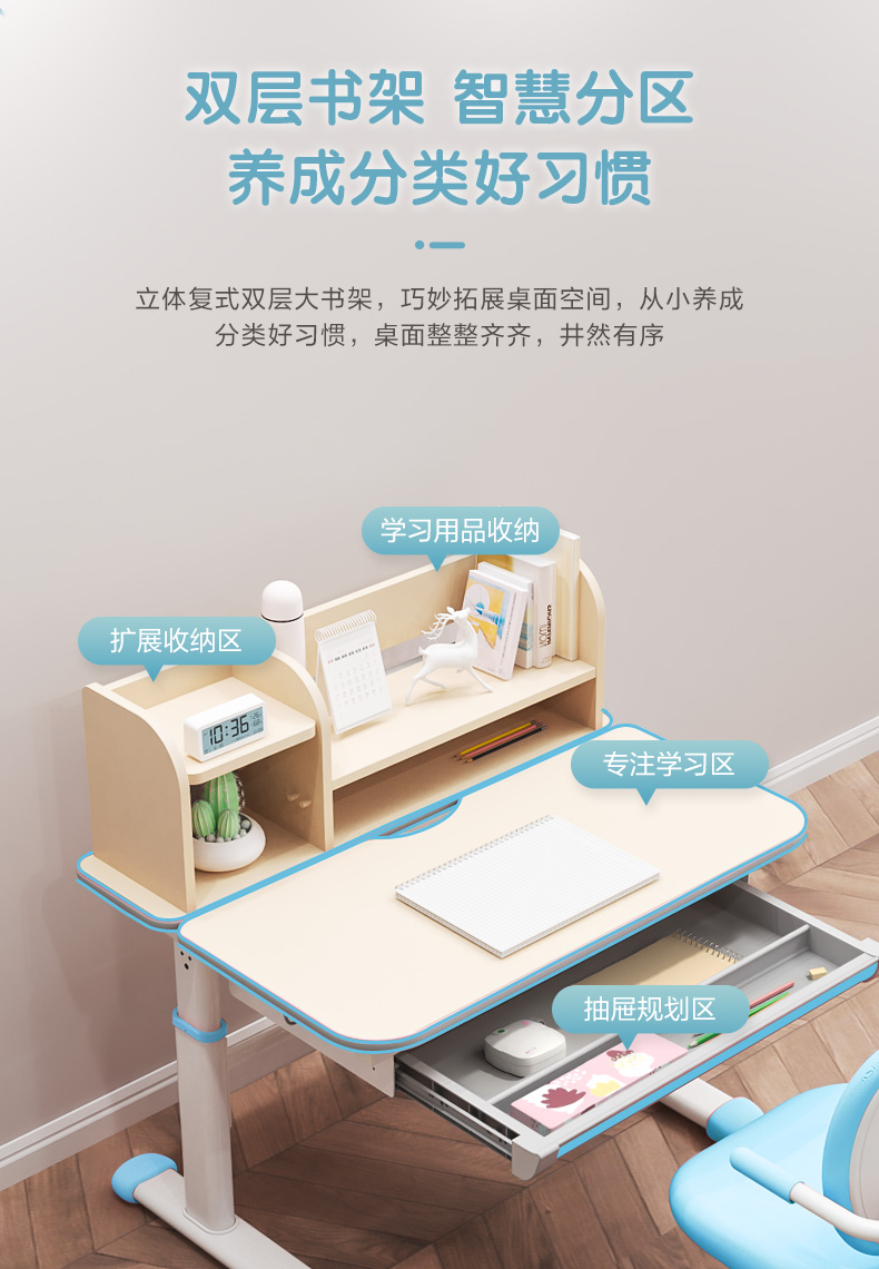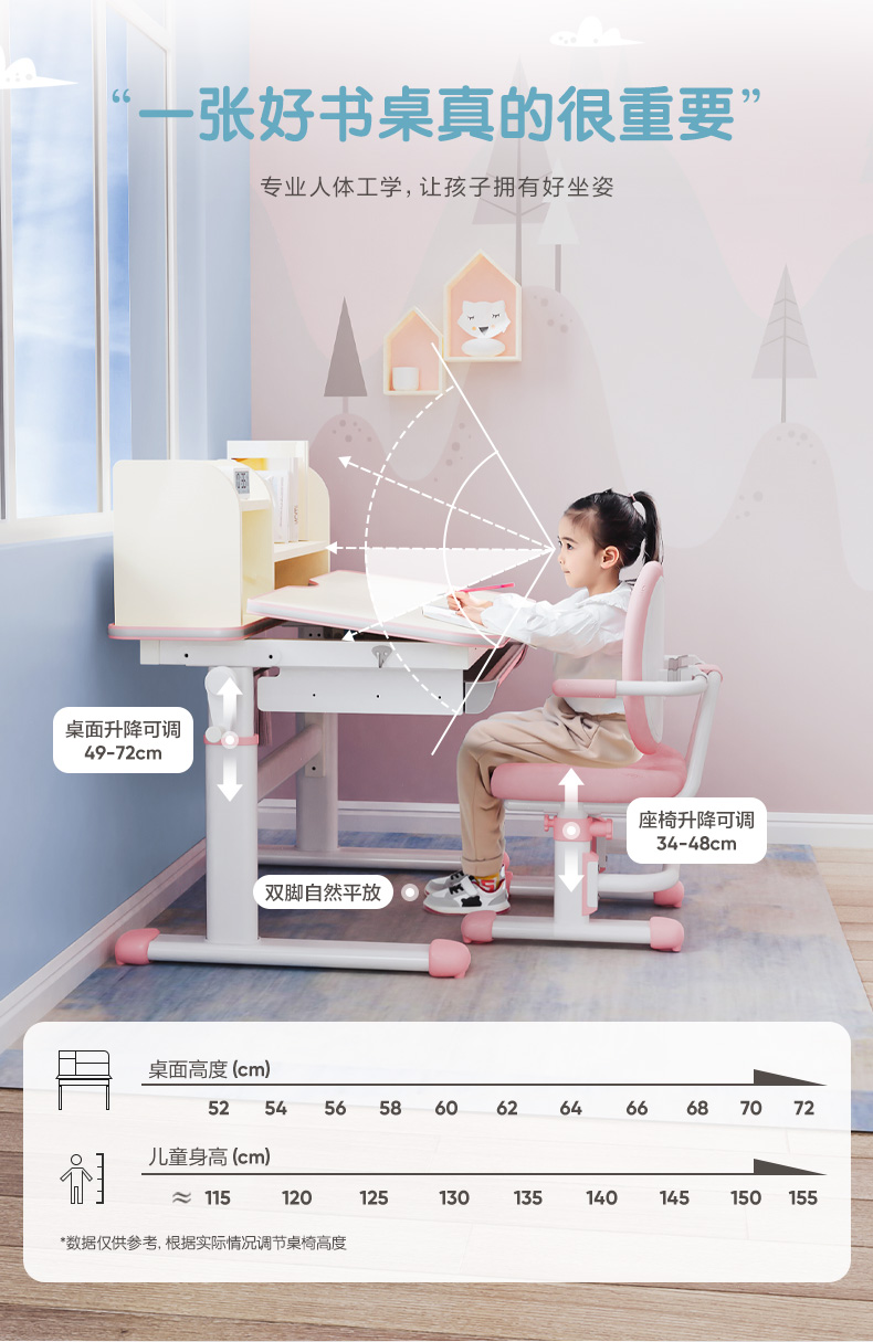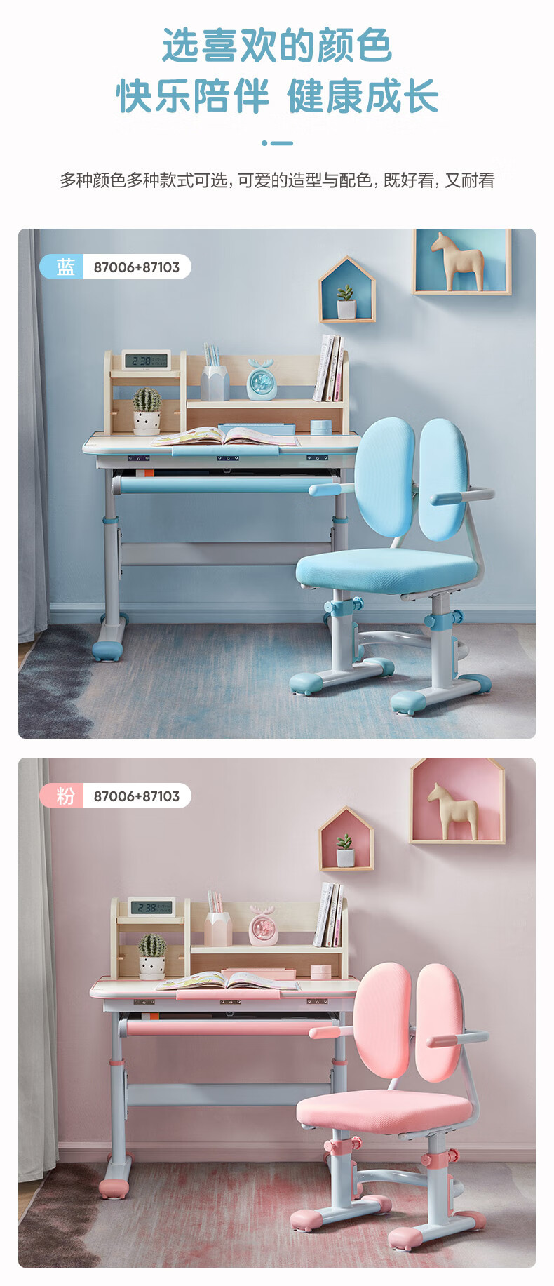 ¥17.46得力 deli 兒童學(xué)習(xí)桌椅套裝 帶書架可升降學(xué)生書桌 80CM 87006 粉色