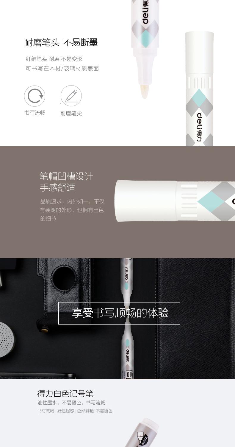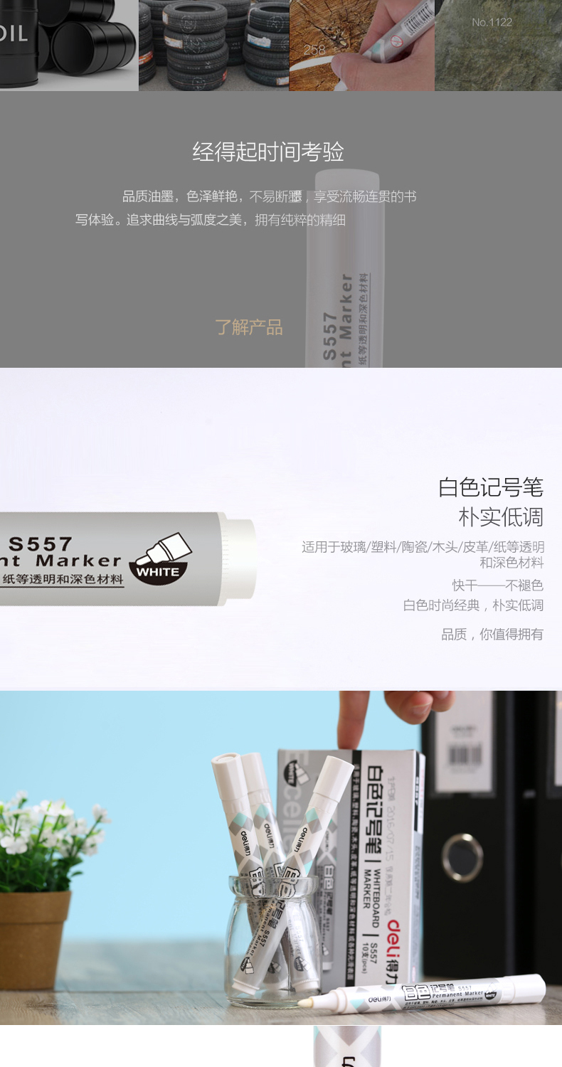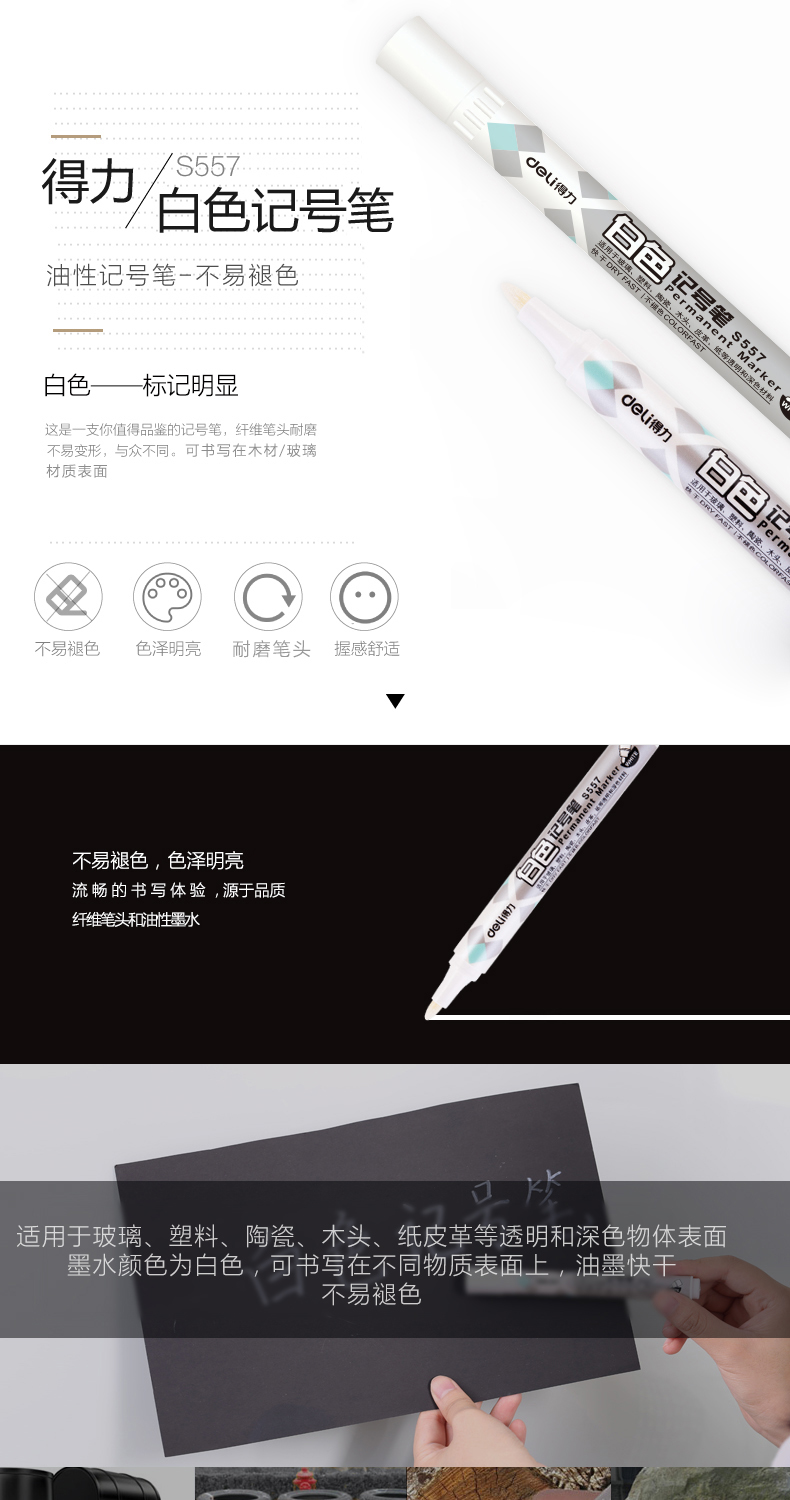 得力(deli) S557 白色記號筆 粗油性筆 輪胎筆涂鴉筆 玻璃標(biāo)記筆 白色10支/盒 自營