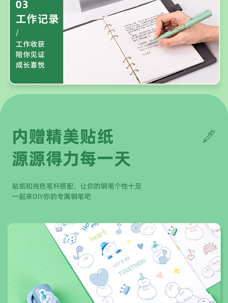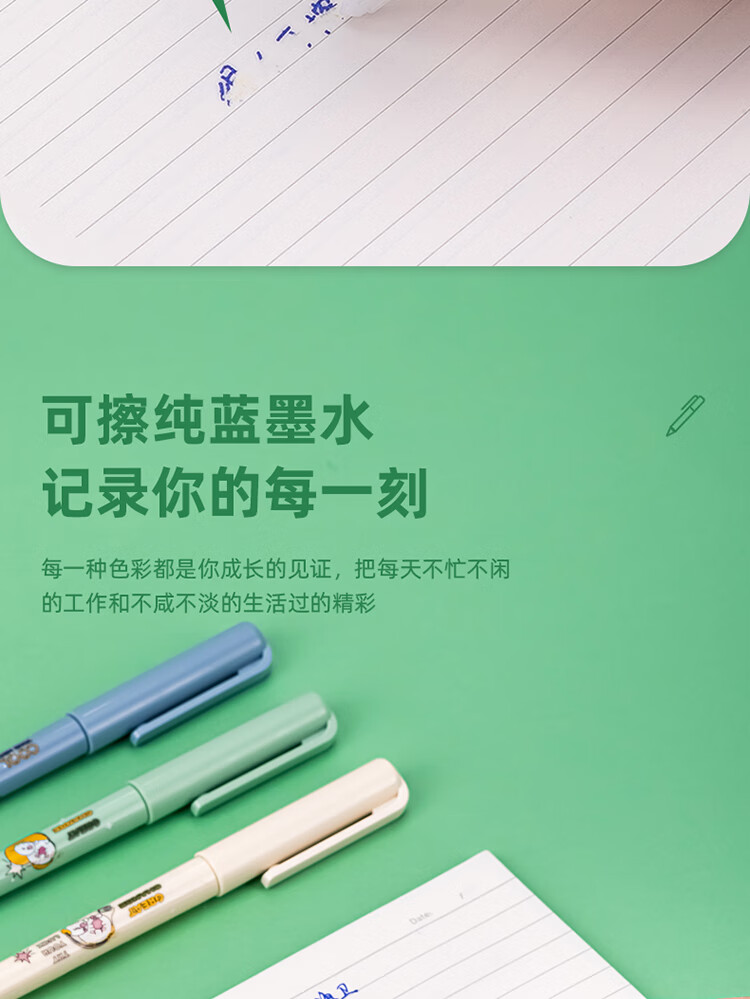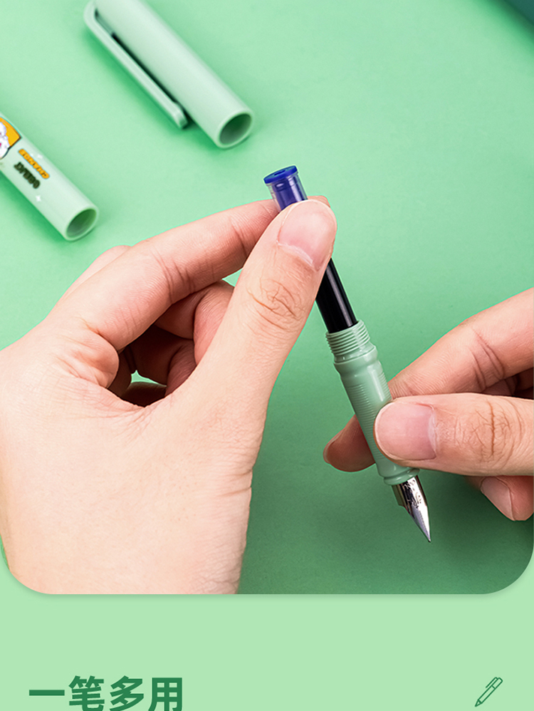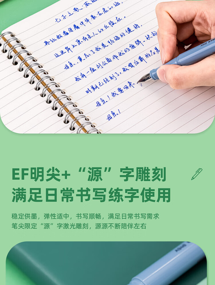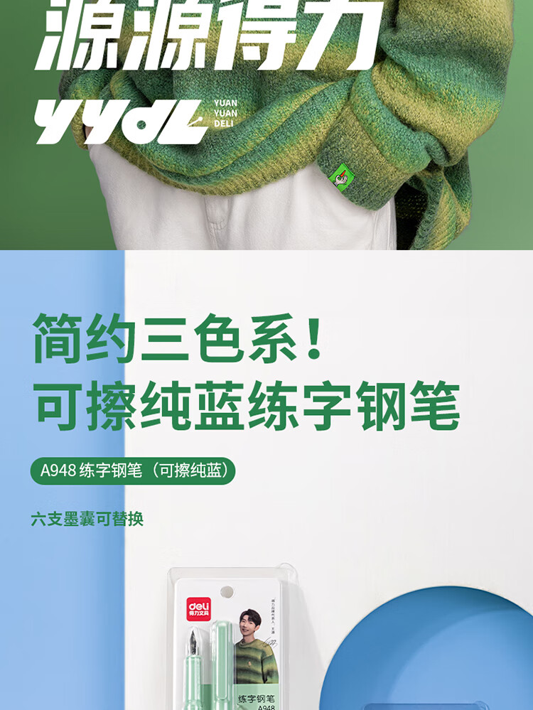 得力(deli)源源得力練字鋼筆 EF明尖 學(xué)生墨水筆 附貼紙 可擦純藍墨囊 1筆+6墨囊+貼紙 A948純藍 自營
